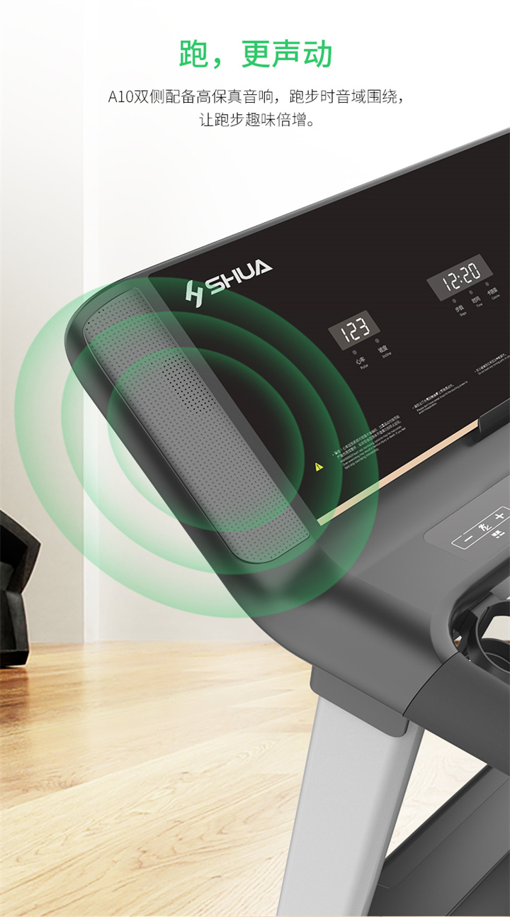 球速体育推荐健身器材-舒华商用电动跑步机SH-T6500拥有10.1寸IPS高清触摸屏、Z型动感时尚外观设计、70×150mm精钢立柱机身、F级高效静音马达、520mm商用豪华跑带和35mm双层全跑台减震跑板等优势,让您享受科学跑步。